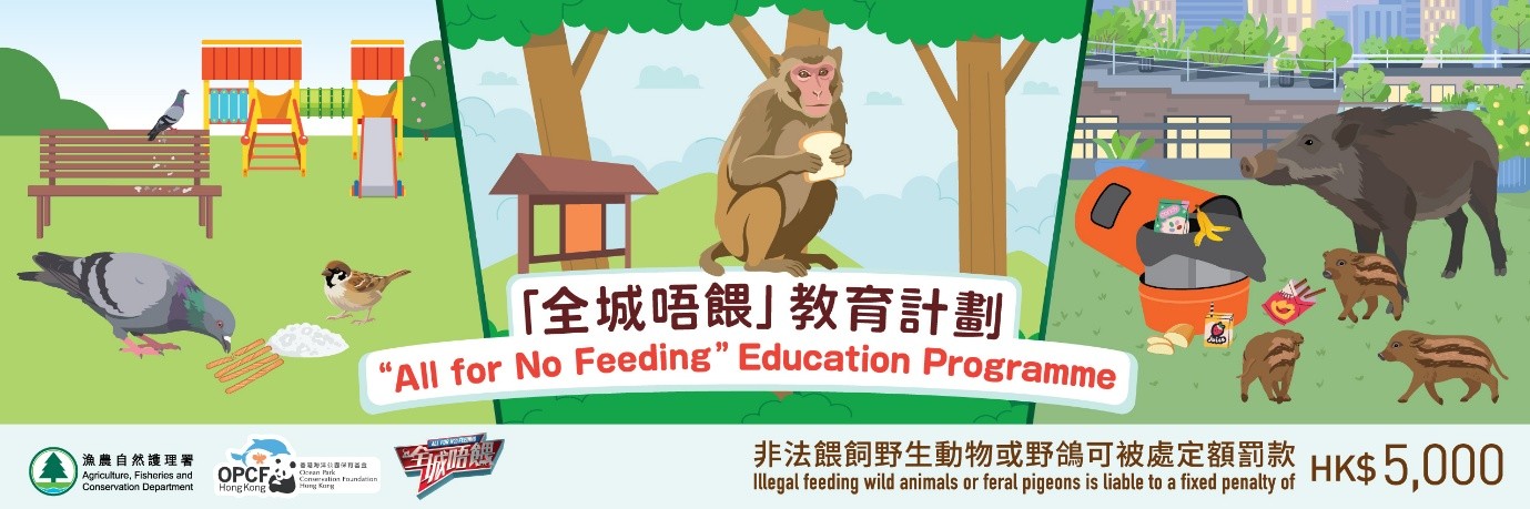 進一步遏止非法餵飼活動,政府已於2023年11月向立法會提交《2023年野生動物保護(修訂)條例草案》(《條例草案》),把禁止餵飼野生動物的規定擴展至涵蓋野鴿;提高非法餵飼的最高刑罰至十萬元及監禁一年;同時就非法餵飼引入定額罰款機制,金額訂為五千元;以及擴大執法人員的人選類別等。《條例草案》已獲立法會通過,已於2024年8月1日起生效。