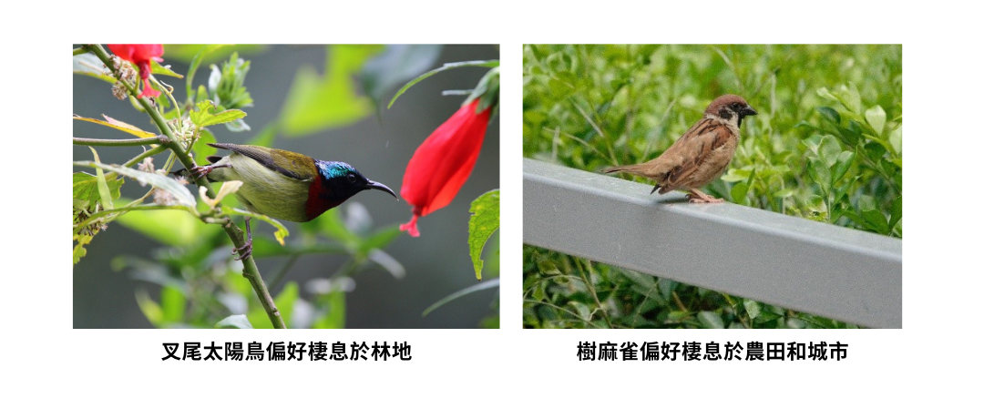 - 雀鳥的身體就像量身訂製的餐具,為牠們喜愛的食物而設計,經數百萬年演化,演化出方便獵食及進食的形態。例如:擁有長而向下彎曲嘴巴的叉尾太陽鳥能伸入花管中吸取花蜜。每一種都見證了大自然的精妙的設計!