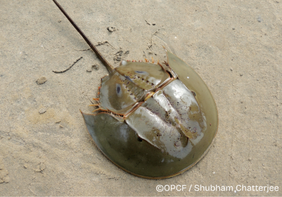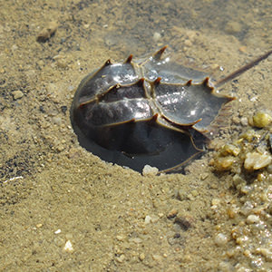 馬蹄蟹 馬蹄蟹(鱟科)是一種古老的海洋動物,早在4.75億年前(奧陶紀下旬)已存在。形態至今仍然沒有重大改變,故被譽爲「活化石」。成熟的馬蹄蟹配對後會回到潮間區域產卵,而幼年馬蹄蟹則會在潮間區域覓食和生長,直至成長到成鱟之後再遷移到淺海生活。 |