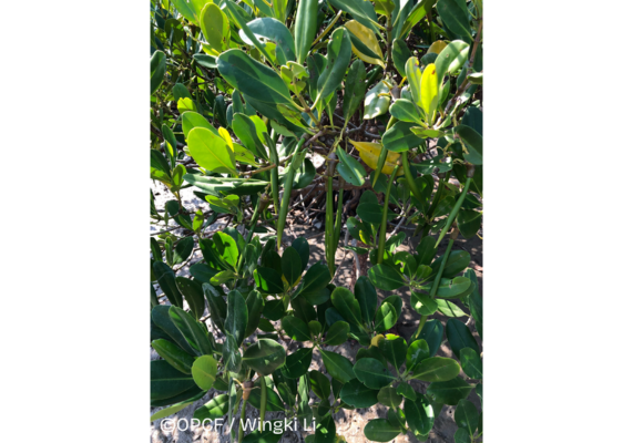 秋茄(水筆仔) 大嶼山乃至香港本土最常見的紅樹,而本地原生秋茄樹(屬K. obovata 的種)則被認爲比起印度的種群(K. candel)有更高的禦寒能力以及繁殖力12。因其胚軸像一枝枝筆桿掛在樹上,而得「水筆仔」之名。 12 Ecogeographic variation in Kandelia candel from Brunei, Hong Kong and Thailand. 1995.