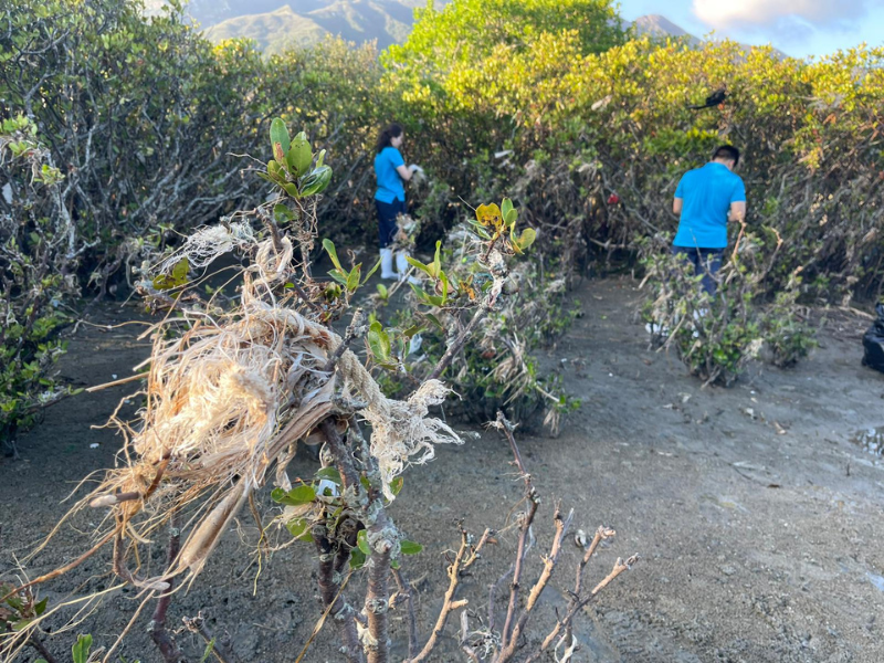 超強颱風「樺加沙」上月襲港,大量海洋垃圾,尤其是塑膠超強颱風「樺加沙」上月襲港,大量海洋垃圾,尤其是塑膠製品,包括膠袋、膠樽、食物包裝,以及魚網被捲上大嶼山水口灣的沙泥灘及紅樹林中,嚴重影響《國際自然保護聯盟瀕危物種紅色名錄》(IUCN 紅色名錄)上被列為「瀕危」的馬蹄蟹的棲息地。海洋公園及香港海洋公園保育基金(保育基金)的馬蹄蟹專家今日率領